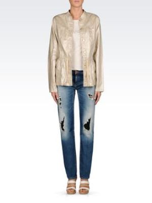 Разбира се, джинсите са основният акцент на дънките на Армани. Изборът на модели, предложени от известния дизайнер, е много широк. Дизайнерът се е отдалечил от общоприетите класики, които изглеждат скучни за много хора. Специално внимание трябва да се обърне на дънките от свободно рязане, в които можете да присъствате както на официални приеми, така и на нощни клубове. Те са идеално допълнени и маратонки Armani Jeans, както и елегантни сандали на клин . Има и стеснени дънки в колекцията, които отлично подчертават хармонията на женските крака. Любителите на разгорените дънки също имат много да направят избор.