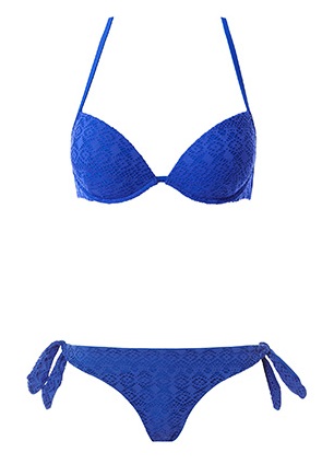 - монохромен бикини, изработени от плат, който наподобява дантела в текстурата;