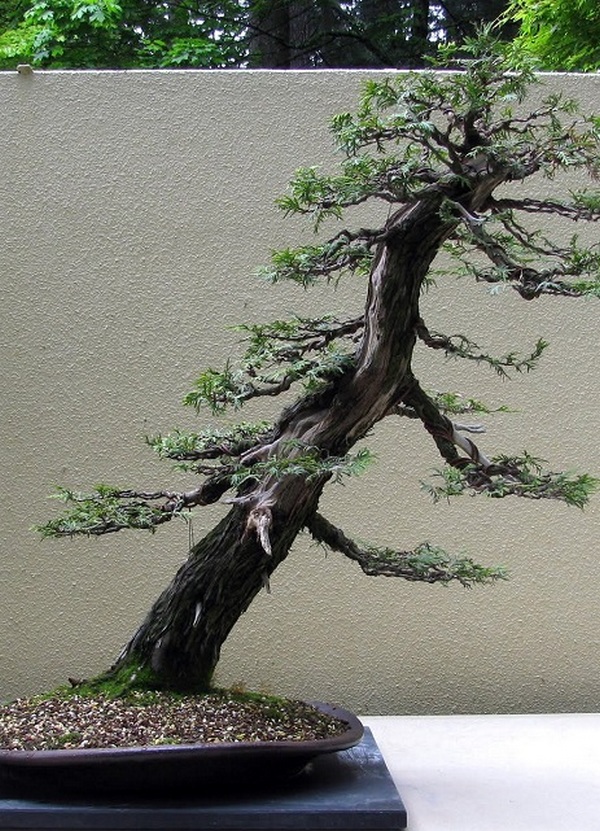 Сиакан (наклонен багаж) - често срещан в колекциите бонсай. Растението расте с дебел или тънък, но задължително наклонен багажник, клоните са от двете му страни. За по-реалистична картина на изкривено дърво, някои от корените трябва да се виждат отвън. По този начин можете да растат дъб, липа, хвойна , клен, туя, бор и много други растения.