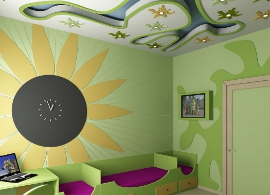 Добавяйки съответния пигмент към бялата боя, можете да боядисвате стаята абсолютно всеки цвят. В този случай можете да създадете наистина неограничен брой различни нюанси за боядисване на стени и тавани в стаята.
