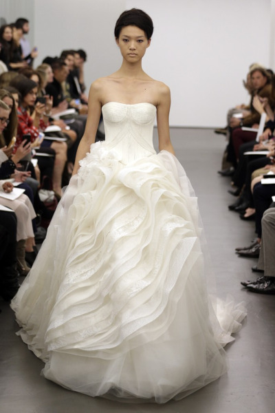 Независимо от факта, че пълната помпозна колекция Уонг отказа, новите й рокли все още говореха в пълен глас, обсъждайки не само стила, но и момичетата, показващи екипировката. Дори и в този аспект от колекцията на Вера Уанг Бриджъл, пролет-лято 2015, е представен оригиналния поглед на Уонг за начина, по който тя вижда булката, облечена в рокля. Според идеята за блестящ дизайнер, идеалната невеста трябва въобще да олицетворява крехкост, беззащитност и мистерия.