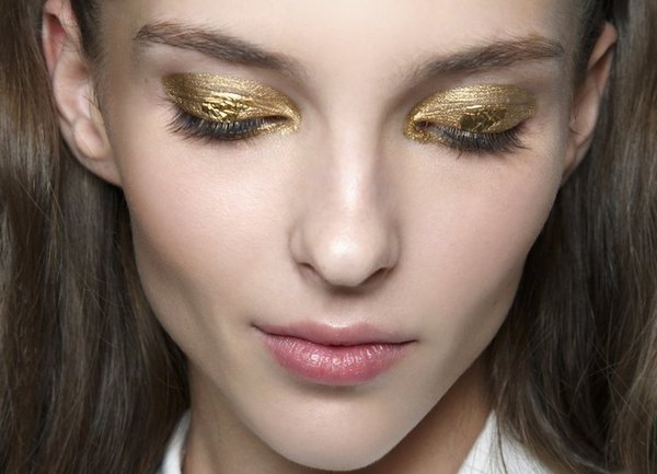 Модните тенденции в грима през 2015 г. казват, че малко злато пред всеки друг не се е намесило. И стилистите препоръчват да се използват не само сенки с малък брой злато, но кремави текстури с ослепително мигване, което ще даде впечатление за най-фините златни листа на клепачите.