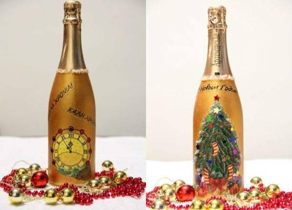 Когато подготвяте подаръци или декор за Нова година, ще бъде много важно да направите Новогодишен декупаж на шампанско или всяка друга бутилка.