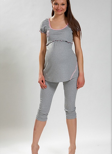 Също в категорията домашни дрехи са пижамите и нощните костюми. Всички същите препоръки - те не трябва да ви държат надолу, да оказват натиск върху стомаха, да предизвикат дискомфорт.