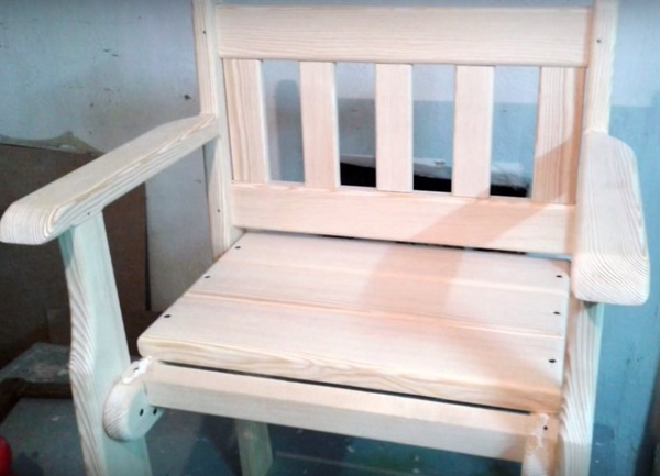 Производството на дървени столове със собствени ръце започва с подготовката на всички компоненти на бъдещия стол: два задни, два предни крака, пет надлъжни и две напречни ребра за облегалката, седалки, две подлакътници.