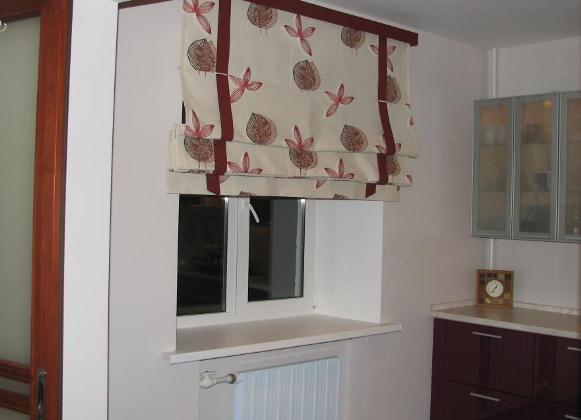 - Римските пердета завеси се събират в корниз в широки гънки с помощта на специален механизъм. И долната им част е по-тежка с помощта на специални летви. Такива завеси могат да се използват както в хотели, така и във вътрешността на частна къща или апартамент. Поради факта, че римските завеси не заемат място под прозореца, те са удобни за използване в кухнята.