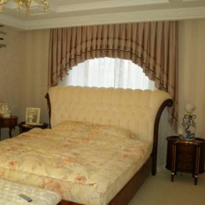 При шиене на пердета и завеси, предназначени за спални, се използват леки тъкани, например: найлон, дантела, тюл, воал и т.н. Ако състава на тези материали е събран правилно, то прозорецът ще се превърне в истинска декорация за цялата стая и ще ви даде уникален стил. Важна роля играе правилният избор на цветови решения. В този случай си струва да се даде предпочитание на бели, бежови , прасковени, златисти и други пастелни нюанси. Цветовете трябва да предизвикват в жителите на стаята само положителни емоции и асоциации. Един добър вариант ще бъде тандем на тъмни завеси и леки, нежни завеси. Предпочитанието е за монофонична тъкан, разрешено е използването на нисък ключ или печат.
