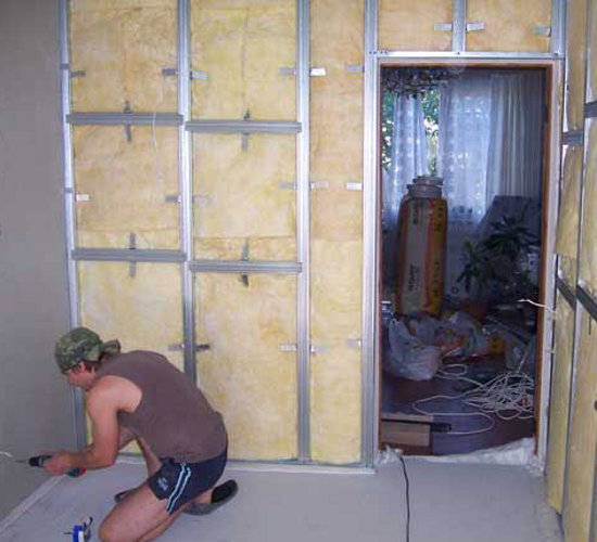 - Ние слагаме цялата стена със звукоизолиращ материал.