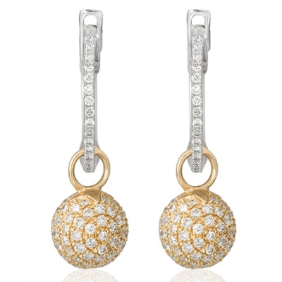 - Обици са златни топки с камъни. Тези обеци ще изглеждат много ярки и стилни. Цялата повърхност на топката покрива малко разпръсване на камъни, които наблягат на красотата на своя собственик.
