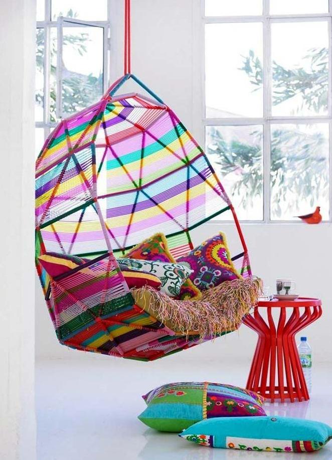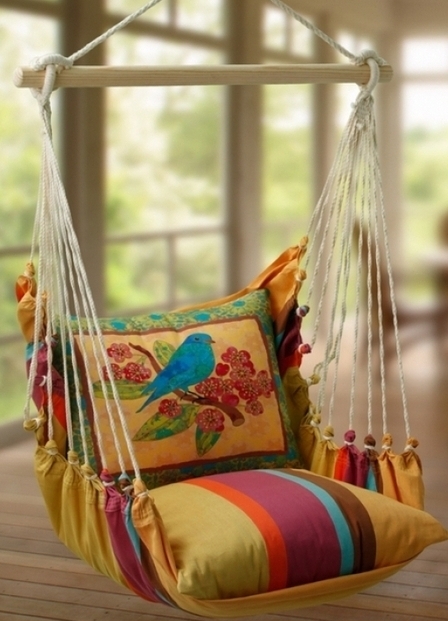 - Окачени столове - люлки за вили . Тук можете да използвате преносими модели, които са прикрепени към клон на дърво или колона. Ако е необходимо, те могат да бъдат развързани и взети заедно с тях, за да почиват в природата.