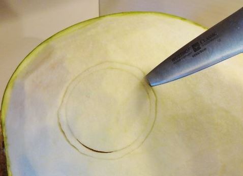 - Използвайки остър нож, маркирайте втория кръг малко повече от първия.