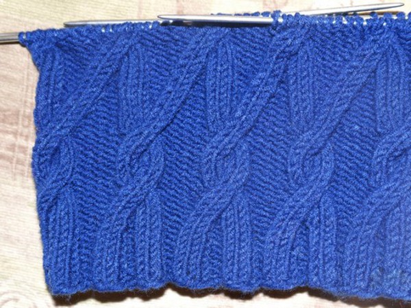 Но вече от деветия ред започва да се извисява модел. Първо, по обичайния начин, пресечете четирите цикъла надясно. Премахваме един цикъл и след това плетаме следните три. След това трябва да се закачите към продукта от най-несвързания контур и да премахнете от четирите иглата за дясно плетене. Несвързан цикъл е отляво. Сега трябва да вземете три трикотажни бримки точно преди да плетете правилната игла за плетене, а четвъртият плета на сърмени конци.