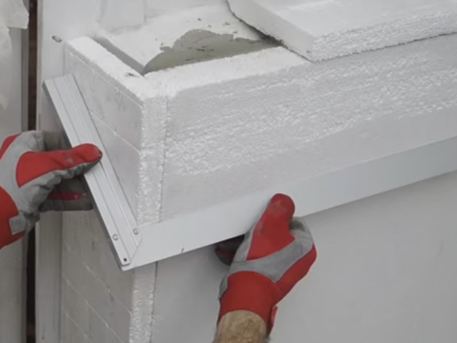 - Внимателно поставете прозореца и ъгловия профил с подсилена мрежа с двойна армировка в ъглите.