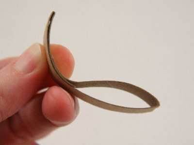 - За плавателния съд вземете дебела кафява хартия и я нарязайте на ленти със същия размер (около 6 * 1 см). Всяка лента е затворена в пръстен и ние поставяме върха.