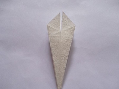 - Изрежете квадратна бяла хартия с размери 15х15см. Можете да използвате хартия с щамповане, тя ще даде цвете още по-текстура. Сгънете резултантния квадрат според схемата, показана на фигурата.