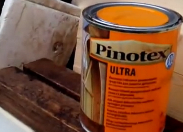 Преди това те трябва да бъдат боядисани, защото на този етап ще бъде по-лесно, отколкото след монтаж. Ние използваме за този "Penotex", въпреки че можете да изберете всяка друга боя. Предимството на "Penotex" е, че едновременно оцветява и защитава дървото от вредители и влага (действа като антисептично средство), а крайният резултат при използването на сянката "Тиково дърво" прилича на ефекта от петна.