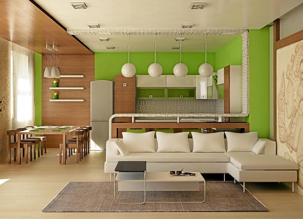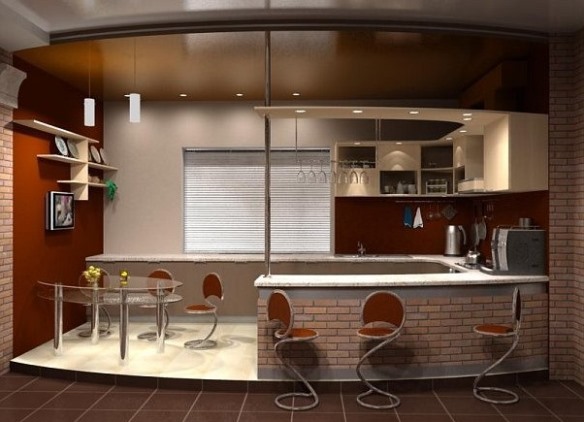 При създаването на модерното кухненско студио се използва свободно пространство, при което пространството е значително разширено, осветлението на помещението се подобрява. Поради това те по-често създават кухненско студио в едностайни или малки двустайни апартаменти, разделящи остатъчната зона от кухненската част на помещенията с помощта на барабан , колони , рафтове със закрити растения и други дизайнерски елементи.