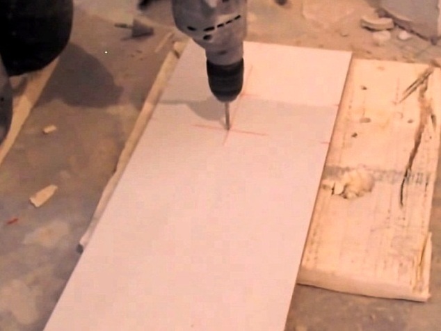 - пробиване на плочки със специална кръгла тренировка "балеринка", която ви позволява да регулирате диаметъра на отвора.