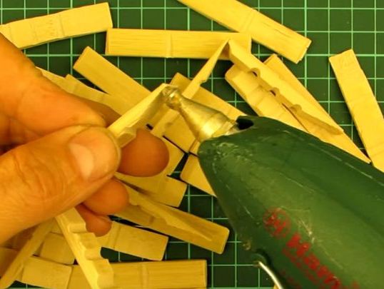 - След това нанесете горещо лепило с терморегулатор върху върховете на дъските.