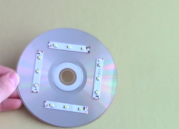 Какво друго можете да си направите лампа? От обикновена кутия за дискове. За да направите това, вие все още ще трябва стари компактдискове, LED ленти , тел, ножици, батерии, лепило.