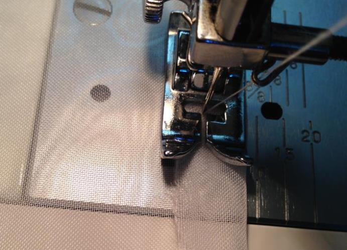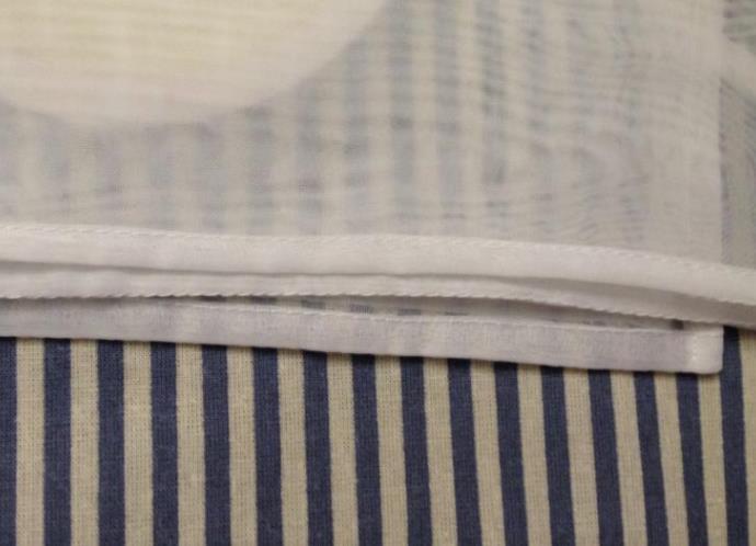 - Сега малко за това как правилно да шиете тюл отстрани. Всичко е идентично, предишните инструкции. Сгъваме два пъти, съответно ще има две линии.