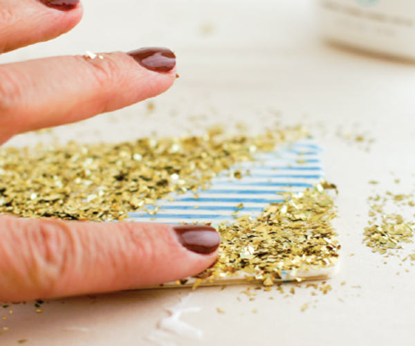 - За работа ще имаме нужда от детайли под формата на правоъгълни карти от шперплат, бяла боя, лепило с блясък.