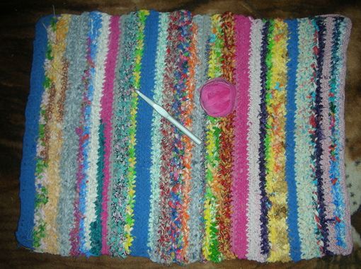 Необичаен килим също може да бъде направен от тъкани ленти от плат или плета.