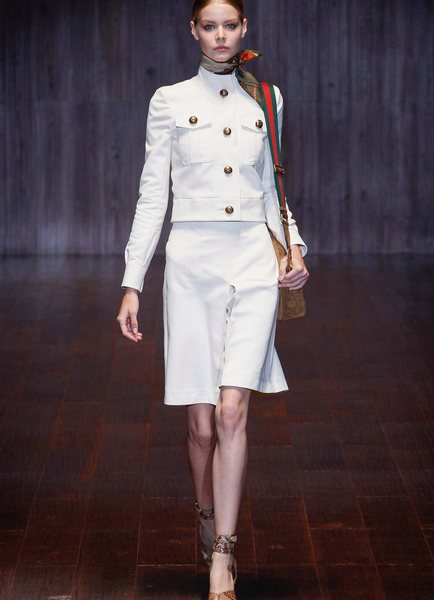 Сезонът на 2015 обещава да бъде много горещ и съблазнителен. На модно шоу колекцията на Gucci 2015 беше просто невероятна. В нея имаше много деним. Особено интересни бяха моделите от военни якета с големи копчета. Също така в колекцията има голямо изобилие от кожа и велур. А откровението на шоуто бяха модели с шевове.