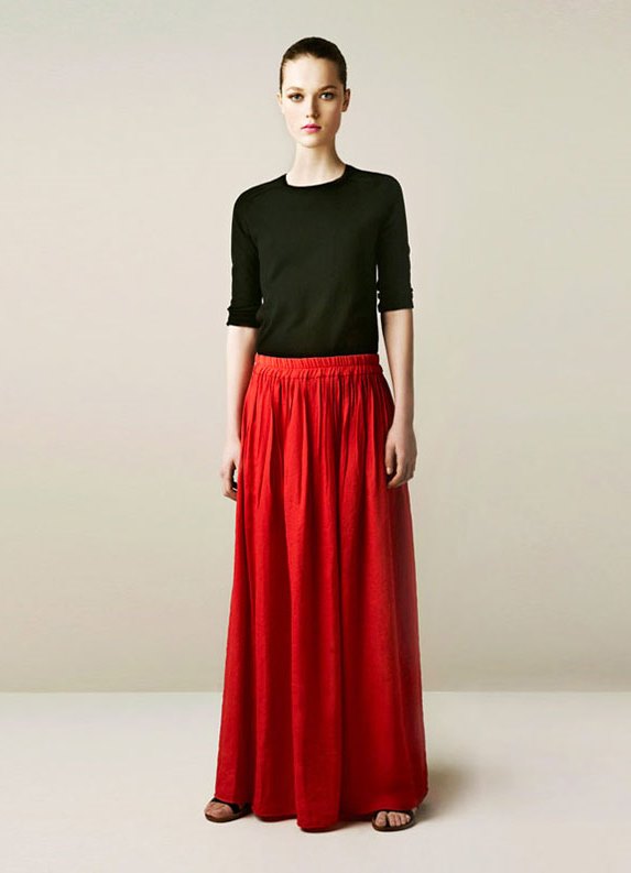 Трябва да се отбележи, че панталоните и полите на колекцията Зара пролет-лято 2013 се отличават със своята простота и консерватизъм. Много стилни панталони за облицовка в тънка ивица. Също интересен модел, тънко подчертаващ идеята за колекцията "моден сезон пролет-лято 2013 от Зара" - панталони-парео. Това са обикновени прави или леко монтирани панталони, допълнени от чифт от същата тъкан.