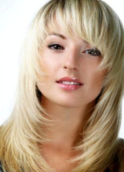Рязането на стълбата на средна коса е перфектно съчетано с всякакви бретончета, но ако изобщо не отидете, е по-добре да се справите без нея. Наличието на взрив зависи от техниката на рязане: ако е така, тогава започнете да го отрежете трябва да е от нея, а в нейно отсъствие - на нивото на ушната лъжица. И в двете версии, получавате перфектна подстригване.