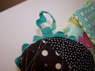 - Ние прекарваме потръпването на контурите на модните детайли. Повдигнете получения шев в кръг.