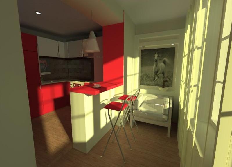 Комбинацията от балкона и кухнята може да се извърши в две версии - с пълно отстраняване на преградата или с излизането на част от стената. Останалата част от преградата може да се използва за инсталиране на плот, бар-плот , декоративна стойка или арка . Пълното отстраняване на стената ви позволява да направите един широк отвор между стаите, оформяйки единична стая.