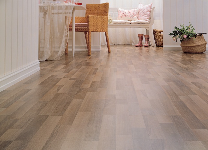 Великолепно изглежда ланолеум под ламинат в кухнята, за разлика от ламинирани подове, е устойчив на влага, което е важен фактор за пода в кухнята, може да се избърше няколко пъти на ден, с химикали, със специално замърсяване. Като правило в кухнята няма ярка декорация на стените, така че е идеално подходяща за линолеум под ламинат от кафяв или светъл бежов цвят.