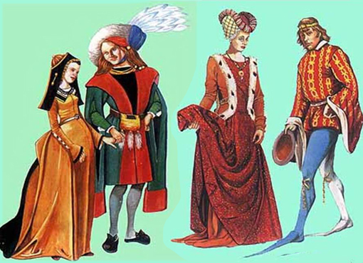 Средновековието е свързано с мрачни картини, чиято сива е отразена в дрехите. Началото на кръстоносните походи обаче въведе Европа в изтънчеността на арабските страни, която донесе в средновековната мода шик, блясък и изключителност. Така че, рокли за благородството са направени само от скъпи материали, оформени с козина, злато и скъпоценни камъни. Тенденцията беше ярка, но употребата на бяла кърпа бе смятана за признак на лош вкус и бедност. Имаше и специални предпочитания. Така че, средновековната мода на жените предполагала, че носела три части зеле. Това е дълга риза от вида на бельото, а след това долната рокля и роклята са горни. Струва си да се отбележи, че последните два елемента са направени от вълна и са с дълги ръкави. Можем само да си представим колко голяма е теглото на това облекло, като се вземат предвид различните декорации и декорации. През Средновековието рокли, не само женски, но и мъжки, са украсени с различни камбани.