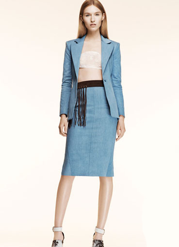 Ако в близкото минало имаше джинси със скромни разфасовки в модата, то в новия сезон те имат по-смел поглед, тъй като в тенденцията има уличен стил , характерен за който са отрязани ръбове. Независимо от това, много модерни джинси прагове 2014 са идеално съчетани с по-луксозни неща. Също така е модерно да носите поли, украсени с тюл, камъни или дантелени дантели. По принцип тези данни са подходящи при модели с издължено дъно или дължина на коляното. Момичетата, които искат да подчертаят своето изтънченост, струва да се обърне внимание на деним на молив пола. В този случай коланът трябва да бъде напомпан, тъй като този стил ще подчертае талията и бедрата. Такова облекло може безопасно да се пренесе на работа, съчетано с бяла риза.