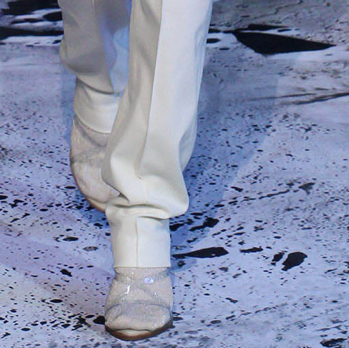 - H & M. Нецки нещо като тази супергалактика, космически достига и модерен Олимп. Така че, шведската марка реши да завладее сърцата на най-екстравагантните личности, демонстрирайки този сезон модерен метален обувки. Освен това деликатните катарами, странно, изглеждат добре в комбинация с тъмни чорапогащи и обемни пуловери.