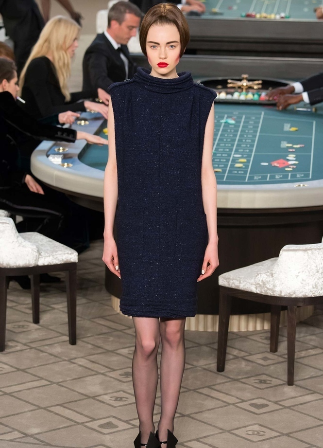 - Шанел . Все още на върха на популярността са костюми от туид - деуи и многопластови, но много леки рокли. Идеално допълнение към всякакви дрехи е камелия като брошка, както и висулки и обеци под формата на сдвоено "С". Важно е да споменем, че Лагерфелд реши да проведе шоу Шанел - есен-зима 2015-2016 на такова необичайно място - казино "Гранд Пале" в Париж.