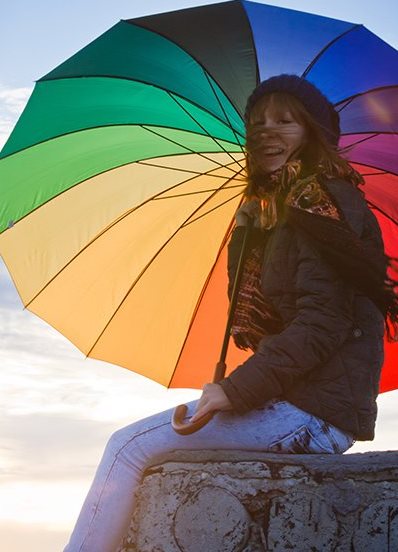 След като се вземе решение за модела, е необходимо да се вземе предвид и оцветяването на модните чадъри. Днес най-популярните са дъждните чадъри. Такова решение на цветовете е в голямо търсене, защото такъв ярък чадър може да повдигне настроението при лошо време. В допълнение, високото значение на модерните чадъри с ирисцентен печат се дължи на изискванията на съвременната мода за ярки цветове в текущия сезон.