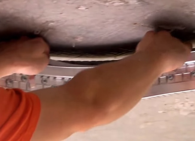 - Определете точните размери на платната на бъдещия таван, като използвате конвенционална и лазерна рулетка.
