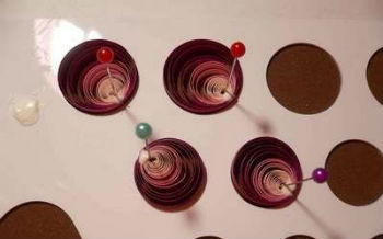 - Ние вземаме една ивица хартия за потапяне. Единият край е захванат с игла и започва да завърта хартията. Свободният край на лентата се разстила с лепило и се залепва към получения кръг. Полученият дантелен кръг ще бъде цветето.