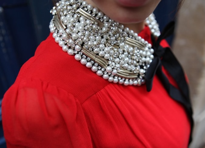 - ако искате да носите яка с дрехи, които той вече има, тогава яката с мъниста трябва напълно да покрие "родния" яка.