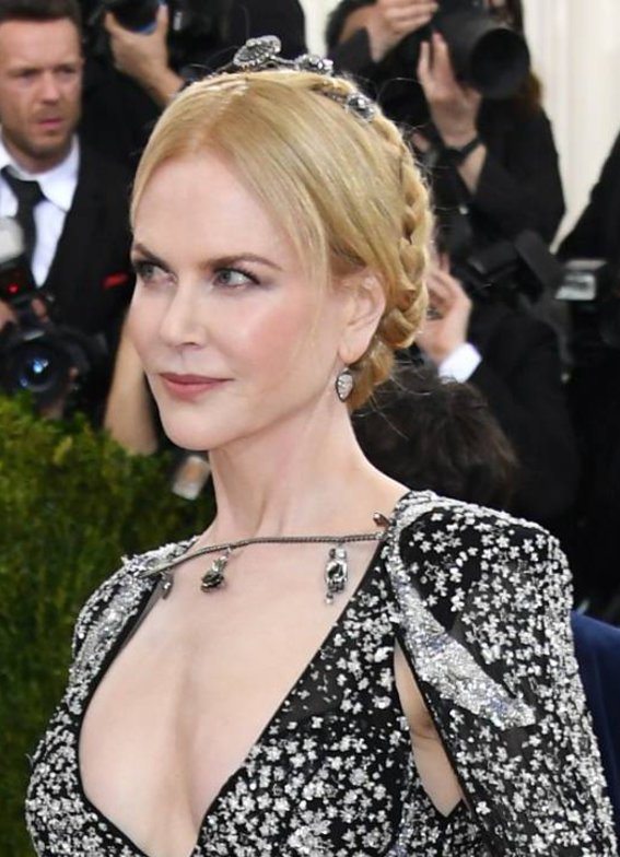 Актрисата се появи пред папараците по обичайния начин: в черен джъмпер с бяла риза и в сива пола. В същото време Кидман беше готов да опита на перука, защото идеалната й коса беше събрана с космичка и с гел.