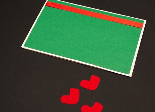 - От зеления картон изрязваме субстрата от предната страна. Формулярът остава същият като пощенската картичка, но само размерите са по-малки: минус 1 см.