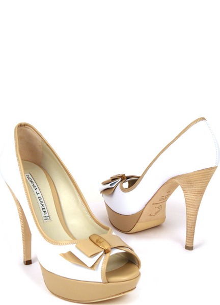 - Бели обувки с фиба. Символизирайте чистотата и невинността. Въпреки светлия цвят, те бавно са мръсни и практически не забелязват прах. Обувки с бял цвят на висока фигура се превръщат в любим атрибут на булките, защото те са органични в сватбеното изображение.