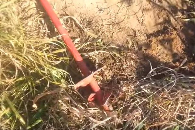 - Сондажът може да бъде използван както от фабрика, така и от самоизработка. Основното е, че пробиването на дупки в земята е лесно и диаметърът на дупката съответства на тръбите, които използвате като постове. В нашия случай беше необходимо да се пробие земята до дълбочина 1 м.