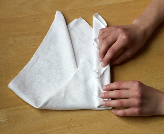 - Сгъваме салфетката си с кърпа, както в предишния урок.