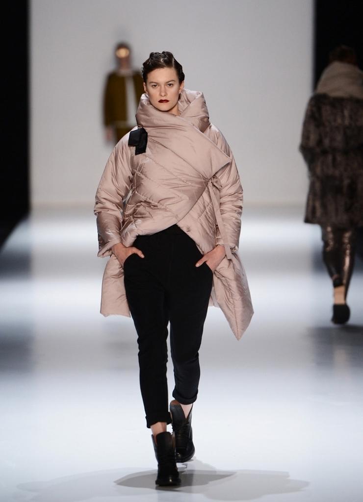 Любителите на нестандартни решения и уверените смели жени на модните дизайнери предлагат интересни якета с големи размери. Такива модели се отличават с оригинален разрез и сглобяване на елементи. Например, заедно с масивна форма, талията може да бъде разположена на нивото на задните части или втулките са залепени в зоната на колана. Надолу яке-болеро в стил на извънгабаритни също е популярна. Необичайната комбинация от късо нарязан и тромав стил определено ще ви отличи от тълпата.