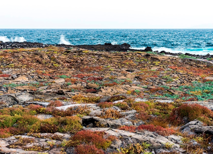 На острова на китайската шапка, практически лишен от растителност, гостите ще бъдат посрещнати от обичайните щастливи обитатели на островите Галапагос . Любопитни морски лъвове се приближават неоправдано до хората, а игуана, слънчево изгаряне, напротив, не могат да обърнат внимание на пристигащите. Спектакълните яркочервени раци перфектно контрастират с тъмните камъни и избягват, когато човек се приближава, смешно разбива карамфил на камъни. Пингвините "Галапагос" също са редовни жители на тези места. На острова има плаж с ослепителен бял пясък, който не се намира никъде другаде в архипелага. Дълбоко на острова има трасе от 400 метра, което постепенно достига височина от около 50 метра. По пътя можете да видите лава тунели с дължина до 20 см, а самият път е покрит със слой от стари корали, излъскан с вълни, за да блесне. Ръководството задължително ще покаже чифт скелети, едната от които принадлежи на мъртвата естествена смърт на игуана, а втората - на морски лъв, който вероятно е бил ранен от акула, но е успял да избяга и да умре вече на брега. Водата в залива между Сантяго и островът на китайската шапка е спокойна и идеална за гмуркане и гмуркане с шнорхел. Подводният свят тук е изключително разнообразен и освен обичайните тропически риби в тези води можете да намерите истинска риф акула.