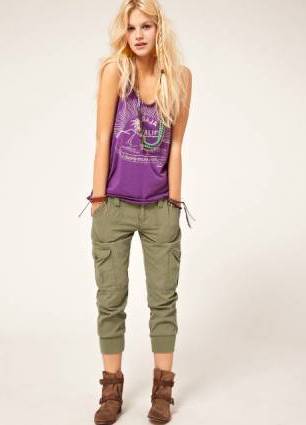 Къси панталони с каучукова лента в дъното . Интересен вариант в младежкия стил е дължината на панталоните 3/4 или дължината на коляното. В този случай еластичната лента е по-изразена, което подчертава тънките крака и грациозната походка.