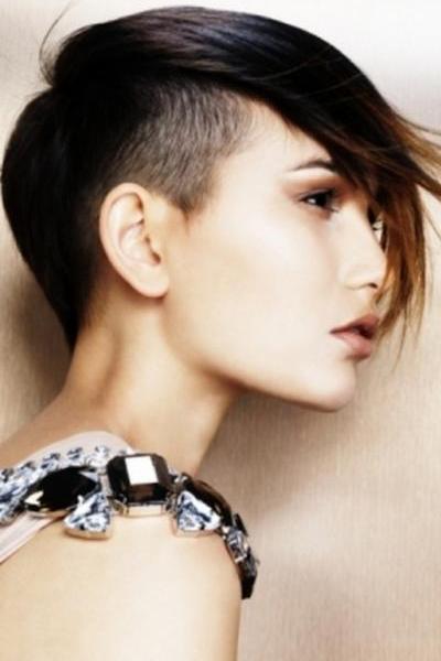 Обикновено срязвайте или бръснете косата от едната или от двете страни. Но някои модни жени, които правят подстригване на косата, бръсне косата си не само отстрани, но и отзад, което им позволява да постигнат максимален контраст. По-радикален вариант за най-смелите е напълно обръснатата страна на главата, докато втората дължина на косата остава недокосната. Но това е и мястото, където богатото въображение на стилистите и фризьорите не спира: те предполагат комбиниране на прическата с подстригване с креативно оцветяване. Например, можете да създадете изображение на контрасти, ако комбинирате черно с бяло или червено и можете да използвате и по-ярка палитра: розова, лилава, оранжева и др. Всичко това блясък, без съмнение, ще изглежда стилно и прогресивно. Много от тези варианти обаче може да изглеждат малко непокорни, така че повечето от жените остават по-задържани: те бръсне само един храм, а цветът на косата не се променя радикално едновременно.